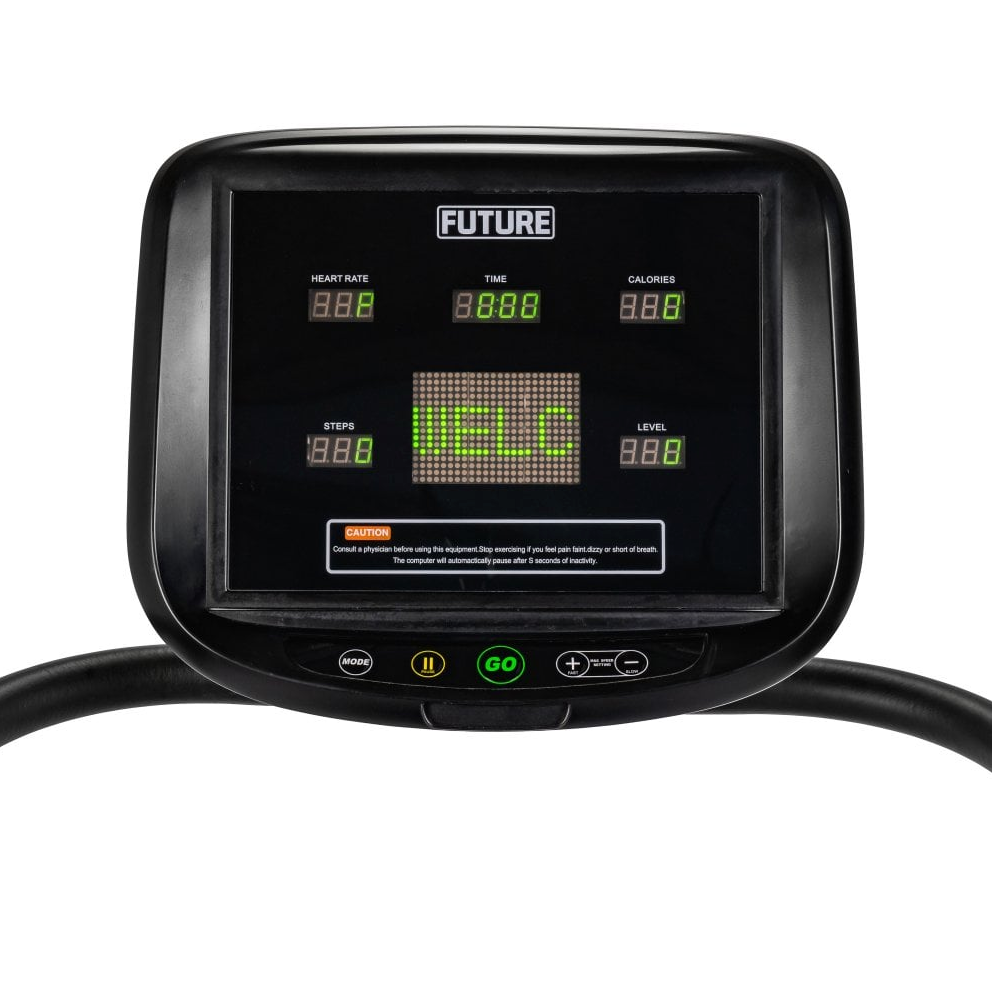 The Future Advanced Series Stair Climber is a calorie burning beast of a machine that builds almost every muscle in your legs and bottom. It comprises of revolving stairs and a handrail and by simply stepping up each step as it comes round you are simulating climbing an infinite staircase. Most Stair Climbers are manufactured for the commercial market and are large in appearance. However the Future Advanced Stair Climber has been designed with a reduced step height and overall height to fit in most UK homes. When you train on the Future Advanced Stair Climber you build multiple muscles in your legs while simultaneously building your core. By changing the speed of the step rotation you can change the cardiovascular intensity of the workout from low to high intensity interval training (HIIT). The Future Advance Stair Climber uses cutting edge technology and precision engineering to deliver a smooth, joint friendly, leg building, cardio workout. The result is an improvement in your fitness one step at a time.