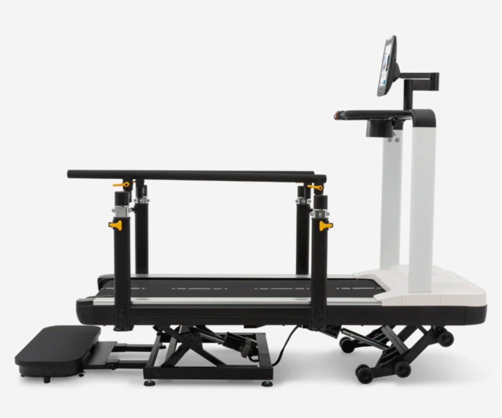 - Deck Lift that raises the running deck to accommodate patients in a harness, to use as a step up exercise or to monitor patients lower limbs without kneeling down